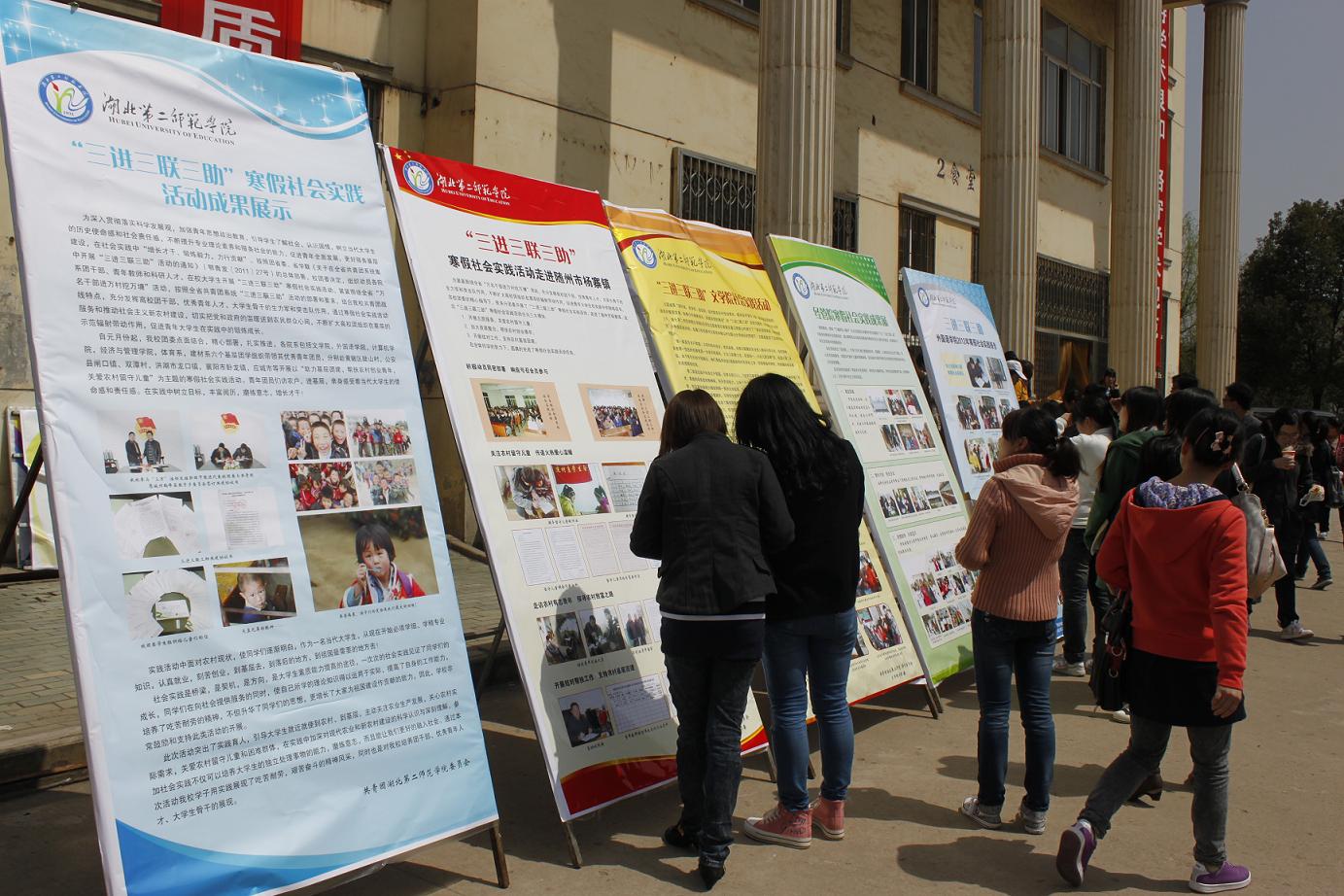 本网讯(大学生新闻中心 江练琴)3月26日,由我校团委举办的“三进三联三助”寒假社会实践活动的成果展示在东区食堂举行。