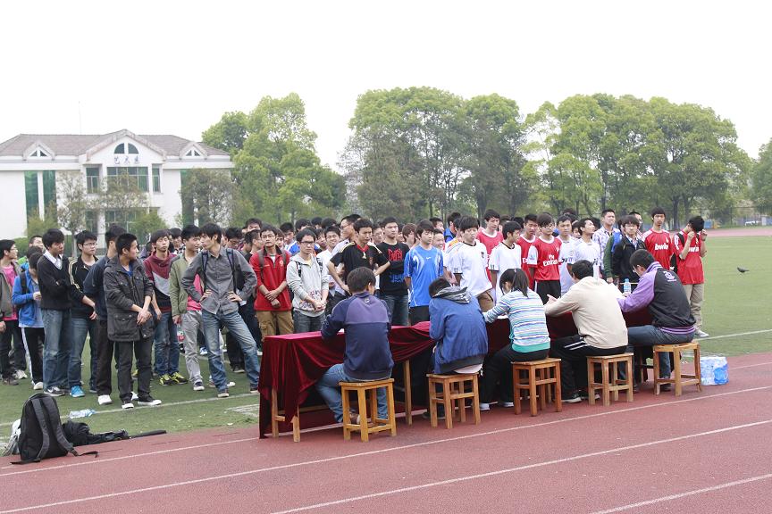 此次比赛以学院为单位,共有12支院系代表队参加比赛。在主持人慷慨激昂的开场白后,来自12各院系的代表队风尘仆仆地开始入场。接着体育系老师华厚杰,社团联代表黄健林,球员代表计算机学院球员代表吴庆分别致辞,最后由华厚杰老师宣布第三届“足协杯”正式开幕.。