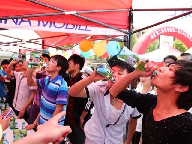 美食节活动共由厨艺小当家、开心大胃王、瓜果创意大赛和天使礼物这四个部分组成,首先开始的是厨艺比拼,选手们熟练的刀法和娴熟的厨艺令现场不时传来赞叹和掌声,麻婆豆腐、香芹鸡蛋、糖醋排骨等一道道色香味俱全的佳肴便出现在大家面前。随后开始的大胃王活动更是精彩纷呈。比赛开始,每位参赛男选手面前摆放3瓶啤酒,在最短时间内喝完者即为胜利,观众们热情的加油声很快吸引来了更多的人,两场男生赛后,赛场出现十几位女生参赛,更引得一片欢呼,比赛开始后,观众们异口同声的呼喊着“加油!加油!”,最后来自09级应用物理学的袁维同学以18秒一瓶的惊人成绩在女生组脱颖而出。“参加这个比赛是为了挑战我自己,我认为自己一定可以。”