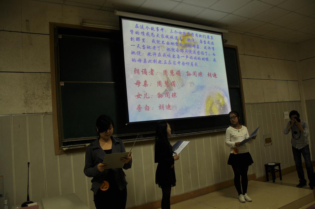 在小组间竞赛结束后,得分较高的六位选手又进行了个人朗诵比赛。“选手们将情感、主题以及背景音乐的选材都把握的十分到位,第五组题材新颖、生动,话题紧跟时代。”龚晓琴老师对选手比赛的表现点评道。