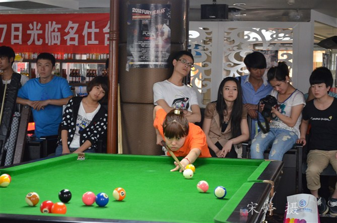 本网讯(大学生新闻中心 韩瑞 宋婷)“好球!好球!”5月5日上午,湖北第二学院师范学院、中南财经政法大学、武汉体育学院等各大高校台球选手汇集在武汉西班牙风情街名仕台球俱乐部进行两两对的小组赛。