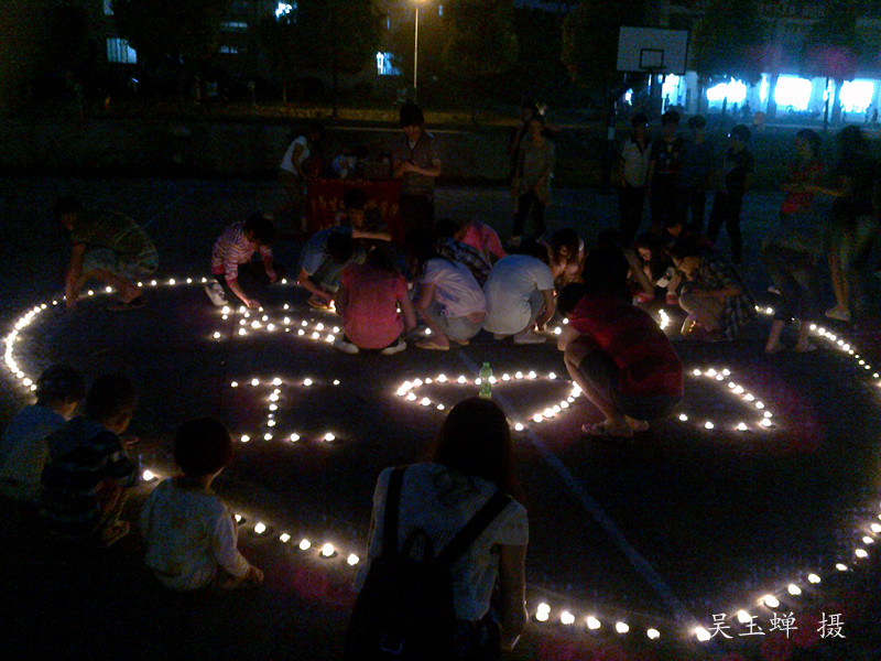 13日7时30分左右记者发现西区篮球场上出现了一个大大由蜡烛摆出的心形,心形里面摆着“妈妈I love you”的字样,数十人都在这里忙着点着蜡烛,路过的大多数同学都驻足围起了这颗美丽的心形,数百人手牵着手唱起《世上只有妈妈好》记者也忍不住参与了进来,和大家一起点着蜡烛唱着温馨的歌曲。“我们大家一起大声喊出‘妈妈我爱你’好吗?”小红帽大声呼吁道。于是西区篮球场上响起了动人的爱的声音……