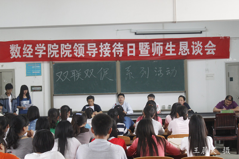 本网讯(大学生新闻中心 吴玉蝉 谢瑶琴 夏迪彩)24日12时30分,“双联双促”系列活动之数经学院院领导接待日暨师生恳谈会在数量与经济学院10202室举行。数经院院长李明、党总支书记宋礼民、副院长梅汇海、党总支副书记夏永祥等出席了本次恳谈会。