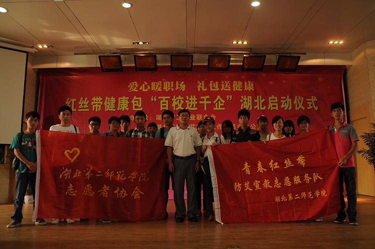 本网讯(通讯员 王春艳)9月27日,全省红丝带健康包“百校进千企”启动仪式在武汉长江工商学院举行。我校20名志愿者与武汉大学、华中师范大学等10所高校的200余名志愿者一同参与启动仪式,成为全省高校防艾宣传的“排头兵”。