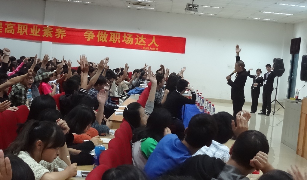 最后现场转入温情的感恩环节,在场同学们接受了一次心灵的洗礼和升华。大家在会场熄灯的环境下闭上双眼,在黑暗中倾听肖军的深情讲谈,感悟生命中的感人瞬间。这既是一场新生职业规划的专题讲座,又是一次洗涤学生心灵的过程。