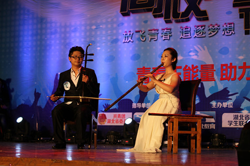 (本网讯记者:王露露)6月19日,由共青团湖北省委、湖北省电视台指导,湖北省学联、湖北省电视台教育频道主办的第三届“青春正能量·助力中国梦”高校达人秀海选赛在我校的大礼堂圆满举行。来自华中师范大学、湖北经济学院、湖北第二师范学院等十几所高校的27组选手为晋级名额展开激烈角逐。