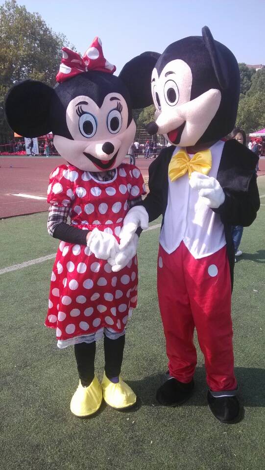 据悉,米奇、米妮两个卡通玩偶是物电与机电学院的“成员”,玩偶由团学联的干部自愿扮演,每半小时就换班。