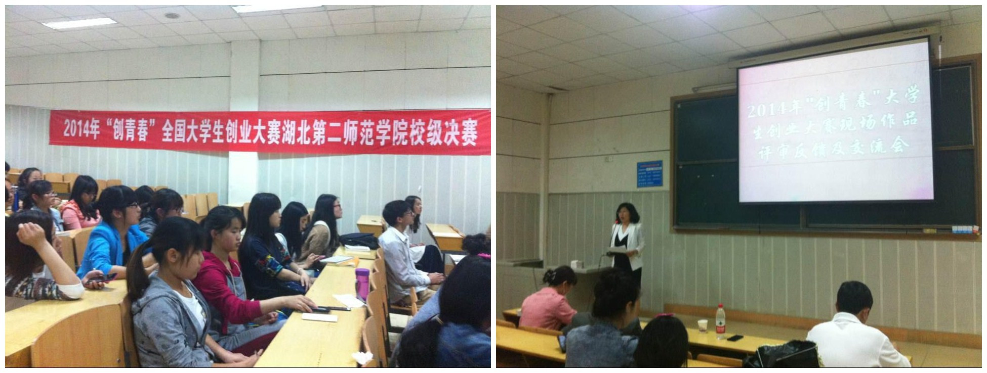 本网讯(通讯员:许亚飞)4月10日中午, 2014年“创青春”大学生创业大赛作品评审反馈及交流会在阶梯教室6拉开帷幕。文学院副院长陈瑛、会计学院副院长陈艳明、经济与管理学院副院长王诗龙、副院长汤中明、副教授赖茂琴,学工部副部长、校团委副书记张敏,以及大学生创新指导中心主任刘兴出席了本次会议。