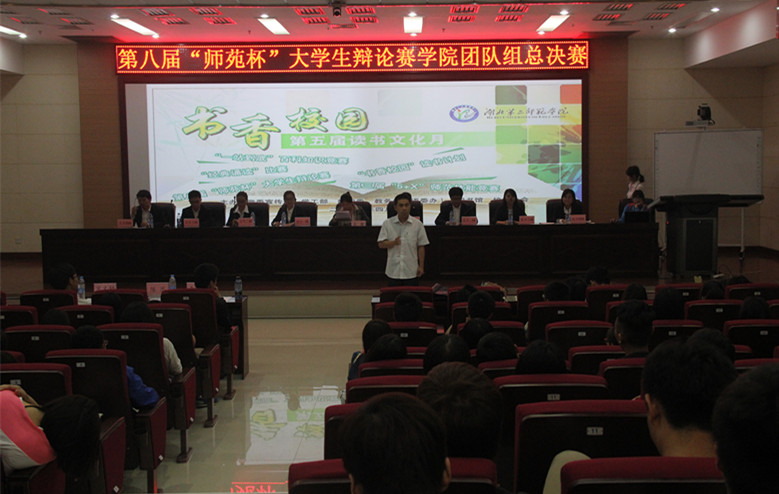 本网讯(通讯员 吕曼琪)5月19日晚6点,图书馆一号报告厅内气氛活跃,虽未发声,但讲台上的“对战”双方都蓄势待发。第八届“师苑杯”大学生辩论赛学院团体挑战赛总决赛在此举行。本次大赛邀请的评委有校辩论队指导老师陈思、文学院李晓峰老师、校辩论队队长宋文轩。