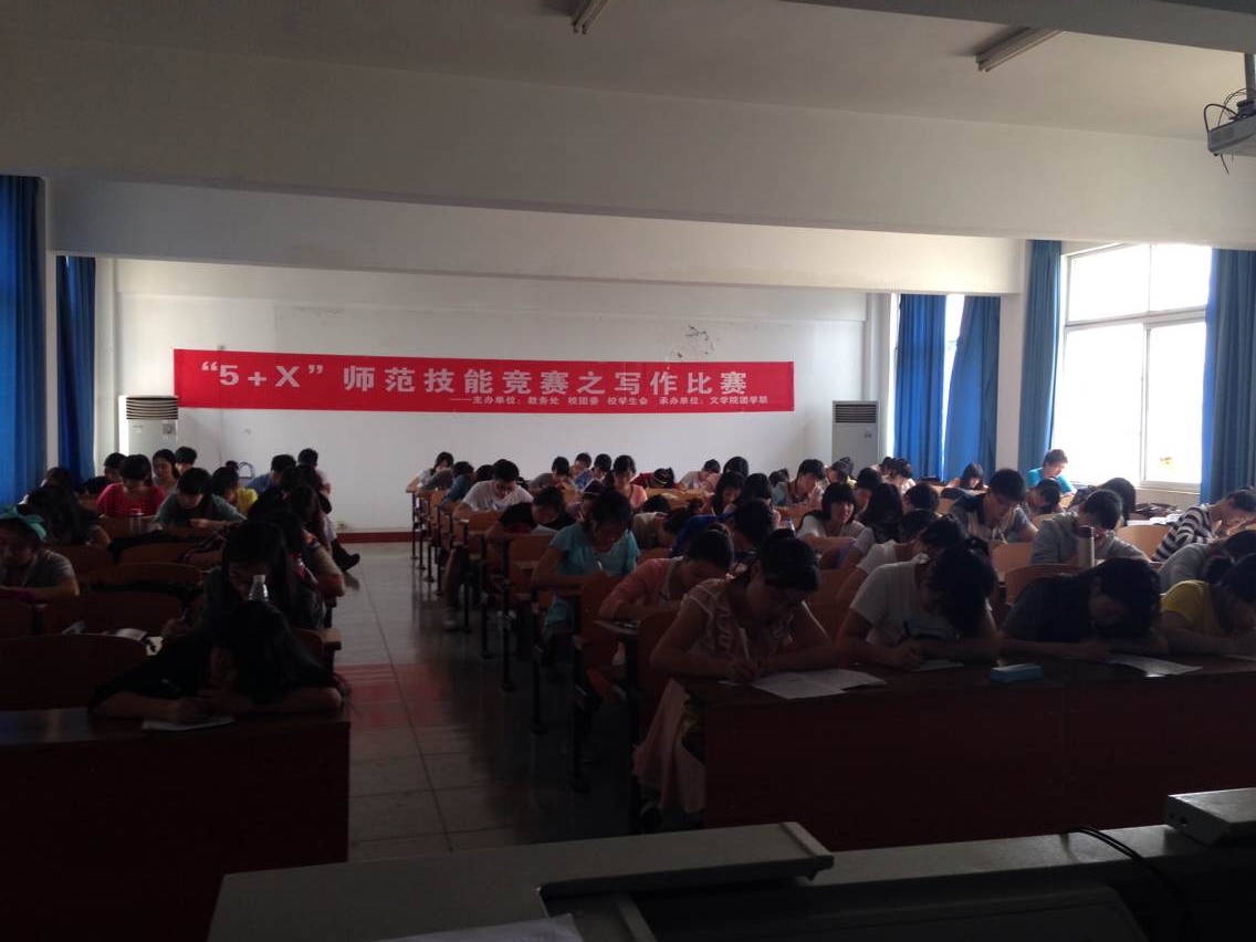 本网讯(通讯员 李万娇)5月20日中午12:30,由党委学工部、校团委、教务处、校学生会共同主办,文学院承办的“5+x”师范技能大赛之写作比赛在计算机学院10408教室如期举行。