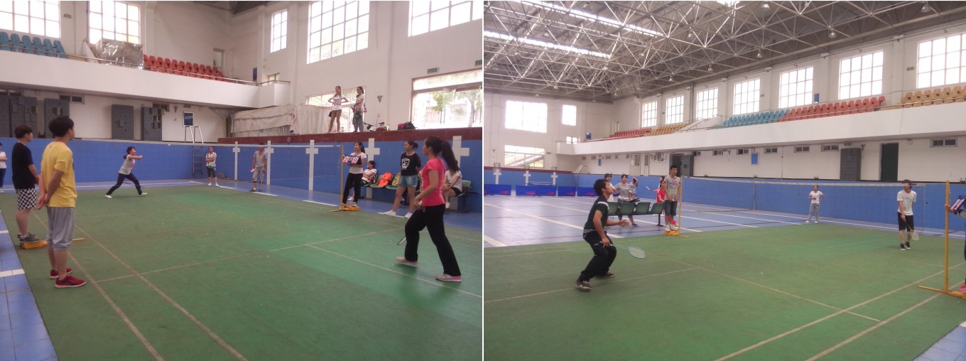 本网讯(通讯员李万娇 雷卡妮)5月29日中午12:30,第三届“5+X”师范技能竞赛之羽毛球比赛(X项)在游泳体育馆举行。此次比赛是第三届“5+X”师范技能竞赛最后一项,为全能选手专项比赛。来自各院的26名全能选手,在承办单位体育学院工作人员的带领下分别抽签。比赛规则为三局两胜,对角发球,每一局11个球,到赛点必须领先两分才获胜,最高分为15分。比赛分两个场地,4位选手同时进行,为保证比赛的公平、公正,比赛安排了1名主裁判,1名记分员,以及4名边线裁判。