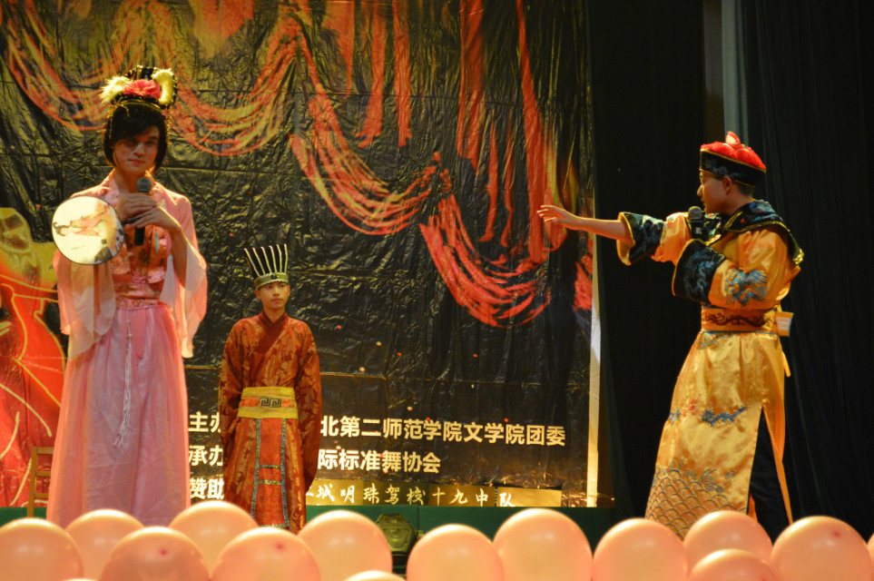 开场舞奔放热情,使晚会氛围活跃起来。国标舞协会陆续给观众们带来了不同风格种类的舞种,如恰恰、伦巴、肚皮舞等。晚会中让人耳目一新的便是话剧《秦始皇选妃》,把舞蹈元素融合进了话剧,不仅为观众带来欢乐,还能欣赏到美妙的舞姿。据了解,这是在国标舞协会举办的晚会中第一次出现话剧表演。晚会结束后的T台走秀也是对历来晚会的一个突破。此外,晚会还有兄弟社团武术协会、天狼星双节棍协会和潮鸣跆拳道协会分别带来精彩的节目助阵。