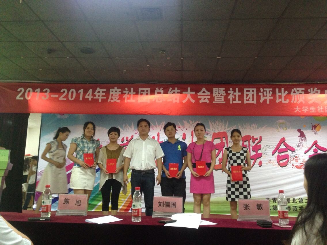 颁奖大会首先由社联工作人员播放PPT,简单的介绍了2013——2014年度社联社团工作的情况。而后对高琳、金琰、张黎 、安丽颖、蒋作栋五位优秀社团指导老师和社团十大风云人物秦亚伟、赵梦莹、吴海、雷金新、刘梦佳、陈盛明、薛锐刚、尹康、涂莉、柴源,以及十五位社团优秀会员颁奖。