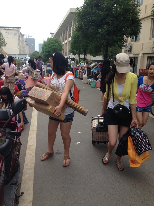 本网讯(青媒记者 王谋清 李斌)6月21日,上午9时,西区9栋和10栋宿舍门前早已涌满了川流不息的人群。今天是寝室搬迁的第二天,为了尽快“乔迁新区”,各院系、各班级也是尽显招数,花样百出。