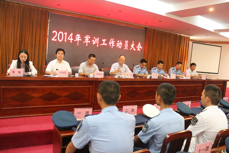 本网讯(青媒记者 王谋清)9月5日下午15时,我校2014年军训工作动员大会在行政楼5号报告厅举行。空军预警学院预警指挥系副主任张宝根上校、参谋剪立成中校、学员五营营长张力少校以及后勤产业集团副经理郝国锋出席了动员大会,副校长黄颂出席会议并发表了讲话。大会由学工部副部长张敏主持。