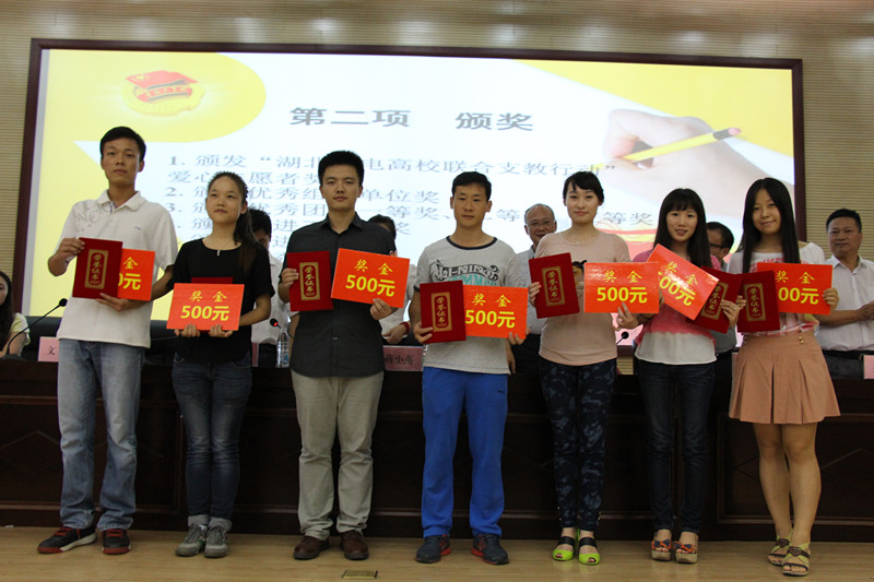 大会由学工部部长刘儒国主持。会议开始张敏宣读了《关于表彰2014年大学生志愿者暑期“三下乡”社会实践先进集体、先进个人的决定》,共颁发了“湖北广电高校联合支教行动”爱心志愿者奖、优秀组织单位奖、优秀团队奖、以及先进工作者、先进个人、优秀成果奖等6个奖项。
