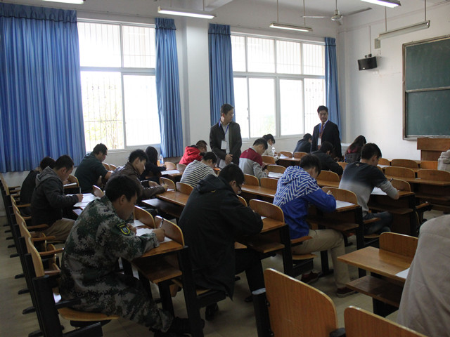 在考试过程中,我校副校长黄颂分别在各教室进行了巡视,视察辅导员的考试情况。