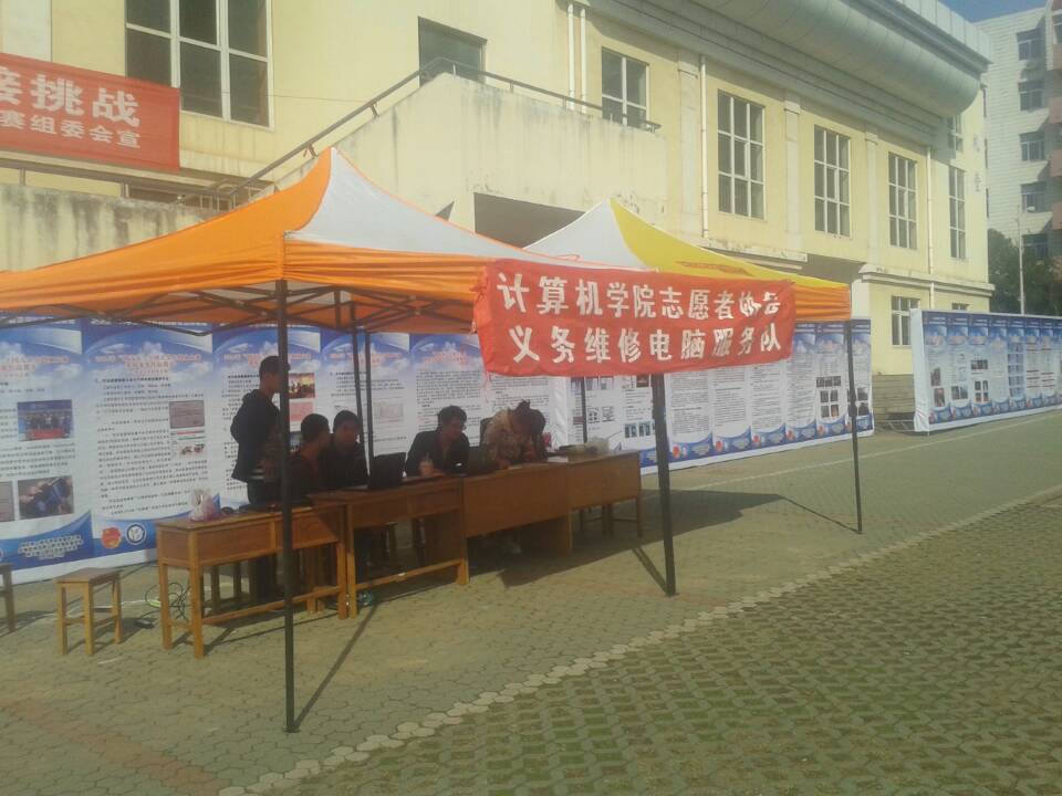 本网讯(通讯员 任婕)11月13日下午4点半,由计算机学院志愿者协会和IT文化社联合举办的“E心为你,红色义诊”电脑义务维修活动在我校大礼堂门口成功举办。