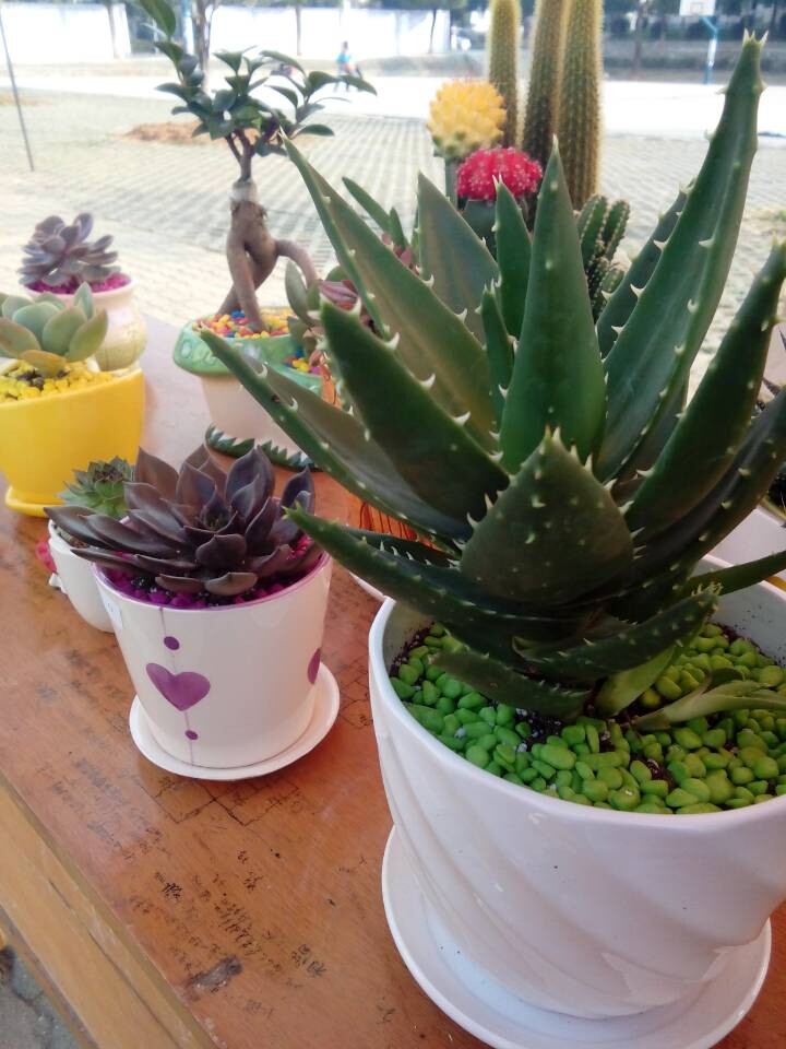 在售卖现场可以看到多种类型的植物,多肉植物(多肉植物是指植物营养器官的某一部分,在外形上显得肥厚多汁的一类植物),如观音莲,冬美人;多浆植物如金柳,万重山;绿植盆栽如千叶兰,小榕树等。“我们DIY园艺工坊的特色就是通过盆栽表达自己的创意”该工坊负责人熊文梅介绍道,顾客可以自己选择盆子和植物,自己进行搭配,亲手制作出属于自己的作品,希望通过这种方式,顾客可以做出自己喜欢的,独一无二的盆栽。