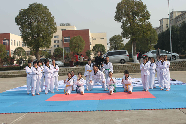 本次活动以一场跆拳道表演拉开帷幕,潮鸣跆拳道馆优秀学员为同学们带来融合了品势、竞技、跆拳道舞等多种元素的表演,动作潇洒自如,出击刚劲有力。动感的《nobody》遇上有力的品势,创意的表演引来了许多同学驻足观看。新成员们轮流踢靶,看似柔弱的女孩们出腿有力,现场观众也不禁跃跃欲试。