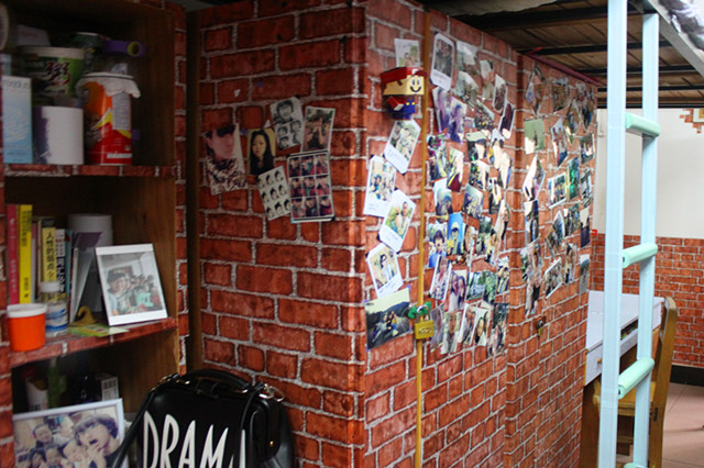 活动分为三个环节:报名、学院内初审、最终评审。进入最终评审入围名单的有31个寝室,这些寝室各有自己的特色。西区9栋515寝室的门前用毛线绣着“Dream high”,整个寝室充满着正能量;六个人的桌前各自有一个单词,“Family”(家)、“Love”(爱)等。她们的寝室长介绍说,寝室就像一个家,因为有家才有爱。她们在阳台用废弃物品做成了一个“爱心墙”,里面是她们的照片等,还有废弃卡纸做成的励志标语“我有必胜法”。熊坤鹏老师夸赞道:“整个设计比较合理,也十分环保。”