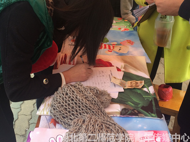 义卖现场不仅有各学院同学亲手编织的围巾,还有十字绣、枕套等手工艺品,这些编织的物品价格在10到35元不等,是前期编织大赛的参赛选手为了献爱心捐出的。颜色各异,款式多样的围巾引得同学们争相购买。“围巾都好好看!而且价格也比市场上便宜很多!”艺术学院的林玉杉同学激动地说道。围巾的售卖速度很快,一个小时便售出了七条。