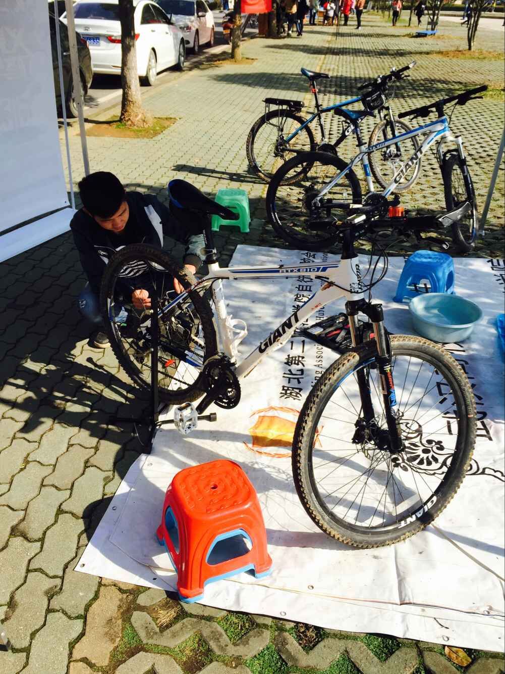 本网讯(通讯员 孟令鹏)2015年11月26日下午1点,自行车协会在西区食堂门口开展了义务修车活动,为同学们的生活带来便利。