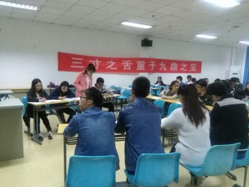 本网讯(通讯员 陈吴铭)2016年10月27日中午12时,于旧图书馆阶梯教室十成功举行了第九届“新生杯”辩论赛初赛之马克思主义学院与文学院的对决。担任本次辩论赛的评委是来自校辩论对的朱煜廷、王雅慧、郭金铭。来到本场辩论赛现场的不仅有正方辩论队来自马克思主义学院的辩手和反方辩论队来自文学院的辩手,更有为观战而来的同学。
