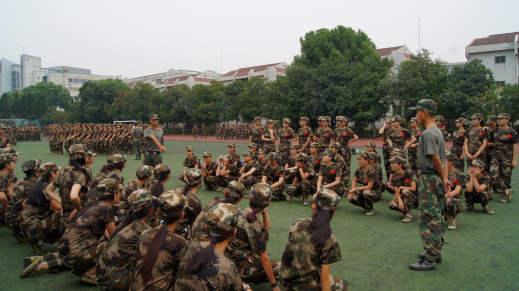 本网讯(企宣部记者 刘海艳)2017年9月21日下午,管理学院各军训营队在足球场加紧训练分列式方阵。
