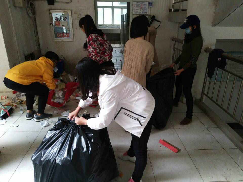 活动伊始,阮斓澜带领财务管理1班12人、财务管理2班18人和旅游管理班1班1人在中六宿舍楼的卫生间和楼道进行了长达40分钟的卫生打扫,活动期间,她们分工明确,合作融洽,效率较高,全体同学积极行动,充分发挥以奉献为主的自愿精神,楼道和卫生间的垃圾在40分钟的时间被一扫而空,楼道里一尘不染,事后得到了广大师生的一致好评。