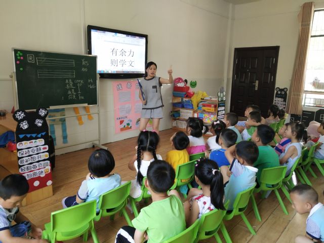 三位志愿者带来了龙滩幼儿园此前从来没有的英语课。初次接触到英语,孩子们显得十分好奇。虽然在教学的过程中遇到了一些问题,但办法总比困难多。手把手的教,各式各样的课堂形式让这个有着三十九个孩子的课堂显得在吵闹中又有秩序。