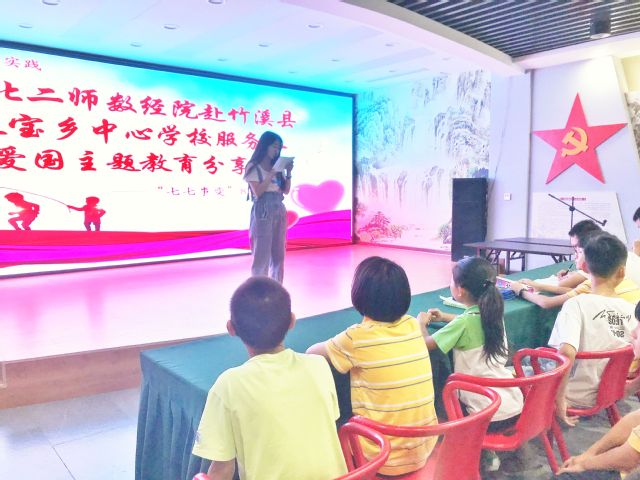 本网讯(通讯员 张亚杰 余欢)82年前的今天,1937年7月7日,“七七事变”爆发,拉开全民族抗战的序幕。82年后的今天,为纪念“七七事变”82周年,我校数经院赴竹溪县天宝乡中心学校服务队的志愿者们围绕这一主题,开展了一系列爱国教育活动。