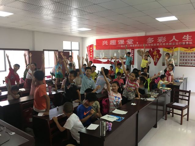 本网讯(通讯员 汤婵)7月17日,是计算机学院“微尘出行”志愿服务队在金谷山村“希望家园”正式开课的第8天。为引导孩子们人生目标、鼓励他们努力奋斗,志愿者们为孩子们精心准备了一堂有趣又有深意的心理团辅课。