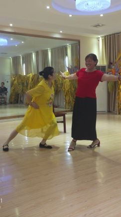 仙人渡花鼓戏团两位女团员向志愿者们展示了著名曲目《夫妻关灯》,也是改编黄梅戏而来,一红一黄,神情精彩,黄衣角色跳脱可爱,红衣角色温婉优雅,动作舞蹈丰富,虽是同是女角儿,却将夫妻角色诠释得惟妙惟肖,剧情之外生动谐趣,令在场的数人忍俊不禁。