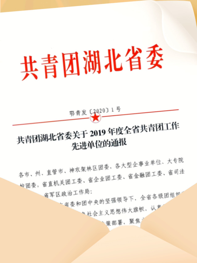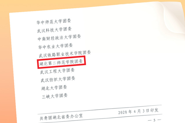 本网讯(通讯员 吴文娟)近日,共青团湖北省委召开湖北高校团干部第14期学“习”荟暨“抗‘疫’中的高校共青团”专题研讨活动线上会议,总结表彰我省2019年度共青团工作先进典型,我校被评为湖北省2019年度全省共青团工作“先进单位”,在获表彰的省属高校中排名第二。
