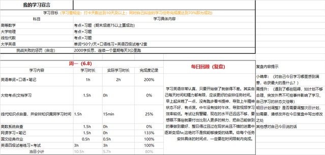 为学习营精心设计的计划表,包含两周总计划、每日计划学习记录复盘