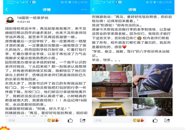 来自16级国际经济与贸易1班的章梦纳,她志愿去新疆服务。6月22日,她在医院做完体检又马不停蹄地赶回阔别半年的学校办理返校离校手续。回学院时,她说:“一个我不认识的老师对我说,丫头回来了?那一刻我承认我想哭了。”她的同班同学任子洋与她一样,也是入围今年“西部计划”的志愿者之一,不同的是任子洋的志愿是去西藏,任子洋表示:“感谢母校对我的栽培,此次去往西部神秘的雪域高原,必将彰显二师志愿者无私奉献精神。”