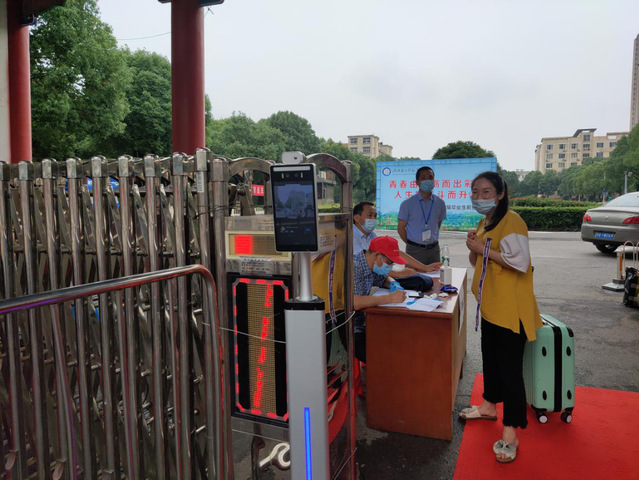 本网讯(通讯员 肖沫晔)6月23日,计算机学院学生第一党支部书记邓家桃联系智慧云天(深圳)技术有限公司,在学校南北大门出入口分别安装了公司自行研发的最新人脸识别加测温门禁一体机,为学校近期正在开展的毕业生离校工作提供了不少便利。