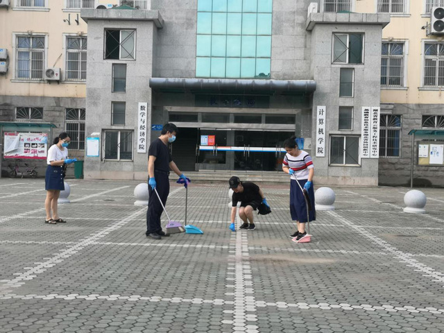 学校教师积极打扫校园,给毕业生提供良好的返校环境。