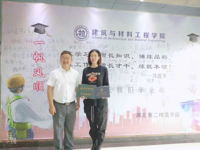 建筑与材料科学学院分党委书记张赟与毕业生姜琪合影。