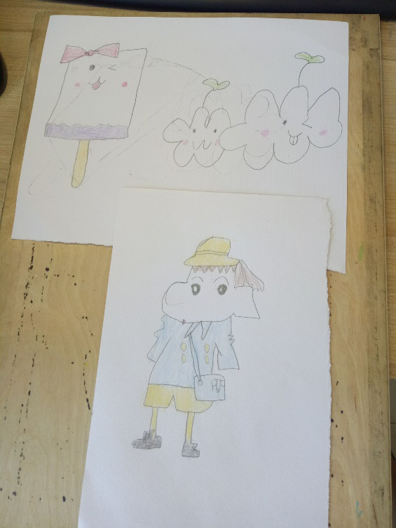 课堂上的时间过得很快,这堂绘画课教学的是简笔画,我选取了三个不一样的东西,分别是:雪糕、云和蜡笔小新。这种较为简单可爱的图案能够勾起他们的兴趣,我一笔一划的教他们怎么样画,他们也很认真的学习,有些小朋友进度慢一点,但仍然努力地跟上;有些小朋友甚至画的比老师还快,一会儿就按照自己的想法把画好的图案涂上了色。他们也都画出了非常好看的作品。