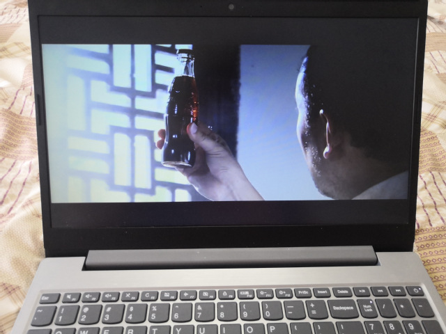 图为志愿者播放的《举起手来》电影画面本网讯通讯员刘仪婷 摄