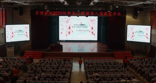本网讯(青媒见习记者 叶蓉 祁丹妮)9月24日13时30分,管理学院2020级新生心理健康入学教育讲座在我校大礼堂圆满举行。管理学院分党委副书记刘兴、学工办主任、分团委书记周慧东、辅导员、班导师以及管院所有2020级新生参与本次活动。
