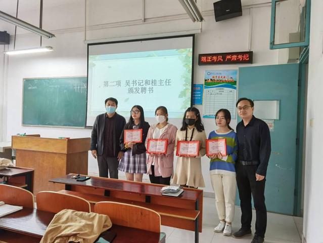 接着,吴书记和桂老师为2020级各班心理委员颁发聘书,并希望她们在今后的工作中认真负责,细致入微,积极配合校心联和外院心协搞好一切相关工作。 随后,外国语学院心理发展协会会长胡楚赢讲解疫情下的心理健康知识,介绍返校后常见心理介绍返校后常见心理问题及其解决方法,并向同学们推荐个人治愈法和集体调整法等调整情绪的方法,除此之外,还着重介绍了返校后心理防护的注意事项,以及心理委员该如何关注班级里其余同学的心理健康状况。