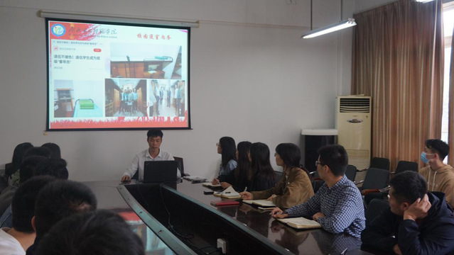 本网讯(通讯员 王燕)为确保本学年的学院文明创建工作顺利开展,积极做好优良习惯养成教育。管理学院继续聘任一批退役军人大学生担任文明督导员兼安全监管员。10月19日中午,文明督导员(监管员)工作座谈会在2号教学楼3楼会议室召开。学院党委副书记刘兴、学工办主任、分团委书记周慧东及相关辅导员参会。