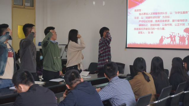 会上,新任的文明督导员们激扬宣誓,共同承诺将率先垂范、以身作则、认真负责、尊敬师长、团结同学、文明礼貌。