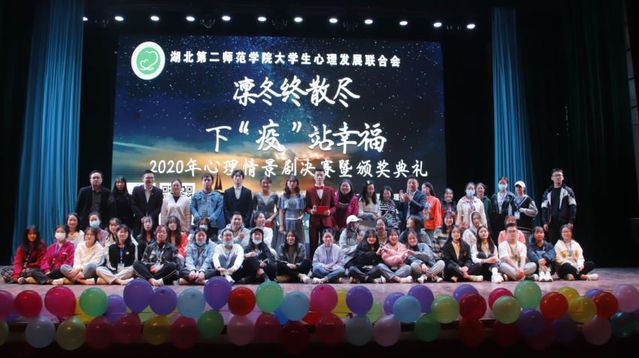 本网讯(青媒见习记者 徐灿 乔文倩)为了推动校园特色文化的发展,了解抗疫的艰辛,传播心理知识,同时也为了促进我校心理健康工作的开展。由我校大学生心理发展联合会举办的“凛冬终散尽,下‘疫’站幸福”2020年心理情景剧暨颁奖晚会于11月13日18时在大礼堂成功举办。学工部副部长、大学生心理健康教育中心主任李小兵、大学生心理健康教育中心副主任郑婧、马克思主义学院心理辅导站站长樊勇、外国语学院心理辅导站站长桂利军、数学与经济学院心理辅导站站长朱玉、计算机学院心理辅导站站长邓佳桃、新闻与传播学院心理辅导站站长孟黎明、物理与机电工程学院心理辅导站站长刘文君、教育科学学院心理健康指导老师彭元、大学生心理健康教育中心专职教师王卉出席本次活动。