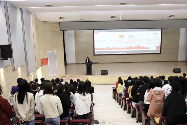 本网讯(通讯员 温洪胤)11月16日12时,管理学院在图书馆二号报告厅召开了第三期“不忘初心、牢记使命”新起之秀学员集训营开班仪式。开班仪式由管理学院学生会人力资源与公共关系部部长童晓艺主持。
