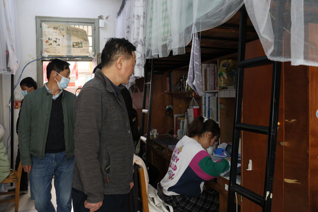 在走访过程中,柯美录还与后勤集团、管理学院、学工部、校团委相关负责人员就宿舍文明创建工作、宿舍改造等问题进行了调研交流。他同时还要求毕业班辅导员加强对返校住寝毕业生的关心与关注,强调要统筹做好常态化疫情防控工作,筑牢安全防线,守住安全底线,为学生们提供一个安全有序、整洁舒适的学习生活环境。