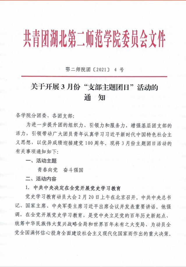 关于开展3月份“支部主题团日”活动的通知